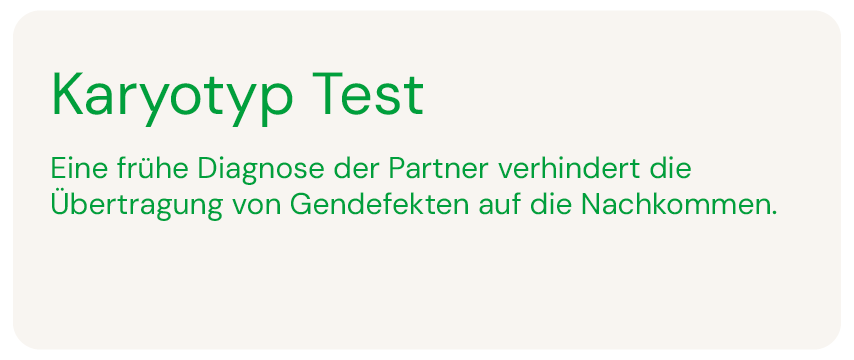 - Bei Verwendung der assistierten Reproduktion, bei der es sich um eine In-vitro-Fertilisation handelt, ist ein Karyotyp-Test fürs Paar obligatorisch.